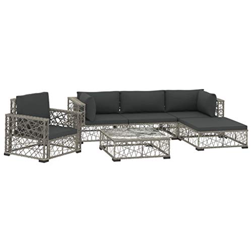 Festnight Garten-Lounge-Set mit Auflagen 6-TLG. Gartenmöbel-Set mit Sofa, Hocker und Tisch Gartensofa Set Loungemöbel Sitzgruppe für Terrasse Garten Terrassenmöbel Balkonmöbel Poly Rattan Grau