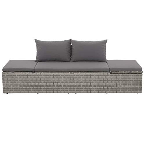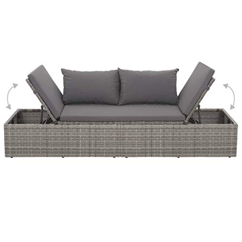 Festnight Garten-Sonnenliege aus Poly Rattan | Verstellbar Gartenbank Lounge Sofa Liege mit Sitzpolster | GartenmoeBel (Grau und Dunkelgrau)