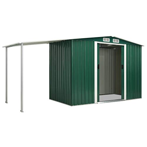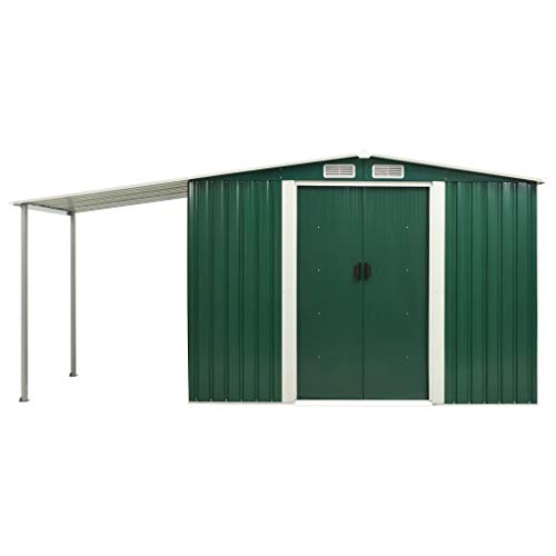 Dieses Gerätehaus aus Metall ist die optimale Stimmabgabe für die Unterbringung einer Mannigfaltigkeit von Werkzeugen, Gartenmöbeln und Gartengeräten.
