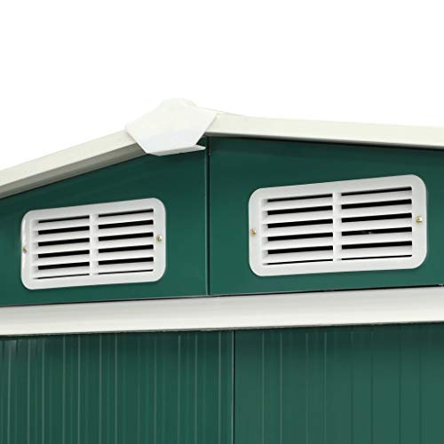 Dieser Lagerschuppen ist mit Lüftungsöffnungen versehen, die den Regen fern halten und den Inhalt des Gerätehauses ständig belüften, um die Ballungsraum von Feuchtigkeit und Geruch zu ermäßigen.