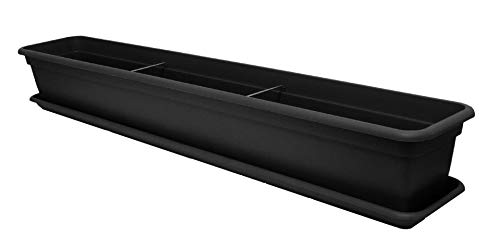 Das Pflanzgefäß ist wetterfest und UV-immer wieder, somit für den Innen- und Außenbereich angemessen; der Balkonkasten ist abgetrennt oder im Set zusammen mit passendem Untersetzer in verschiedenen Farben und Größen erhältlich