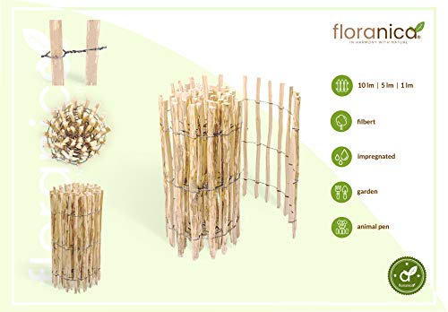 Floranica imprägnierter Gartenzaun Staketenzaun Haselnuss Hühnerzaun Lattenzaun Deko Holzzaun Beetzaun Wildzaun Rollzaun…