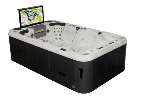 Kunstoff-Umrahmung (wartungsfrei im Übrigen besonders standfest) – wir verwenden im gesamten Whirlpool kein Holz (besonders signifikant beim Ankauf eines Whirlpools)