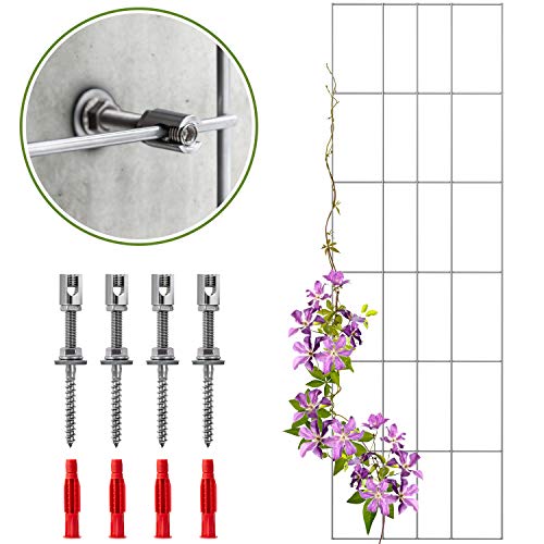 ✅ FLEXIBEL: Die Gitterhalter bestehen komplett aus Edelstahl (V2A) und können je nach Bedarf angeordnet werden. Die Befestigung ist sowohl an den waagerechten als auch an den sekrechten Stäben möglich. In die präzise gefrästen Nuten passt das Spalier perfekt.