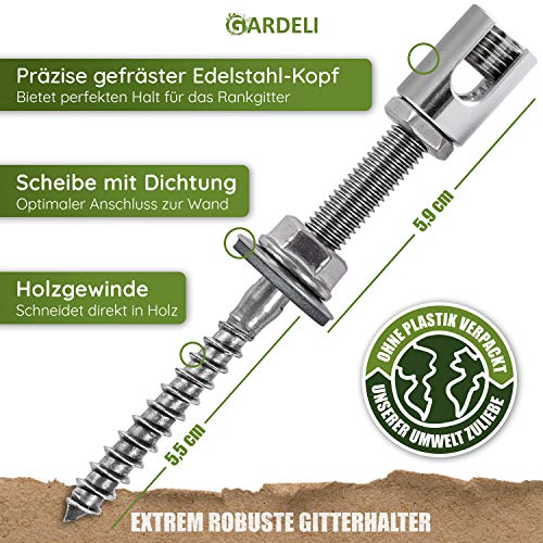 ✅ MADE IN GERMANY: Das Rankgitter von GARDELI wird jeglicher hochwertigem rostfreiem Edelstahl 1.4301 (V2A, AISI 304) gefertigt. Direkt nach der Herstellung werden die Edelstahlspaliere gebeizt und passiviert. Durch diese Veredelungstechniken sind die Gitter sehr korrosionsbeständig.