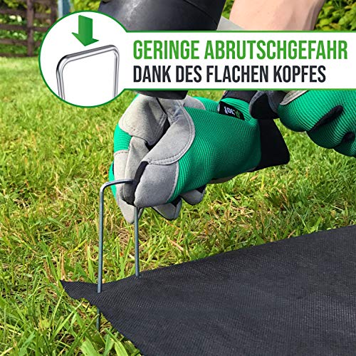 GardenGloss Anti-Rost Erdanker aus Stahl (100 Stück) – Stabile Bodenanker für Unkrautvlies, Gartenvlies, Zaun & Camping – 150 MM Lang, 25 MM Breit, Ø 3 MM