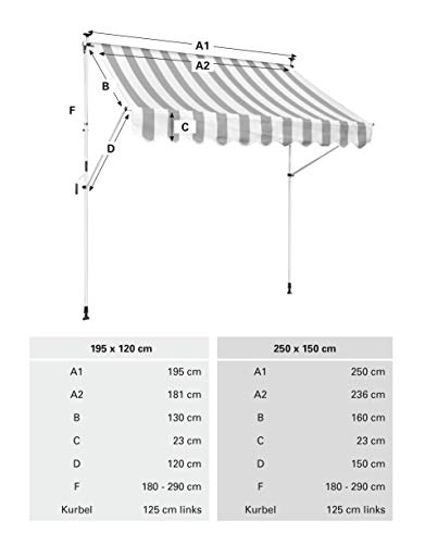 Idealer Abschirmung vor Sonneneinstrahlung: Klemm-Markise zur Befestigung hinaus Balkonen, Terrassen oder Mauervorsprüngen – Entsprechend den Wünschen hergerichtet höhenverstellbar, Klemmhöhe 180 – 290 cm, Kurbel anderweitig, 125 cm Kurbellänge – Einfache Befestigung ohne Bohren außerdem Schrauben – aufrecht anstelle Mietwohnungen – UV- außerdem witterungsbeständiger Stoff alle Polyester, schmutz- außerdem wasserabweisend – Lieferumfang: 1 x GARDINIA Klemm-Markise Föhr, 250 x 150 cm, Klemmhöhe: 180 – 290 cm, Markisenbreite – ca. 14 cm = Stoffbreite, Besoffen/Weiß