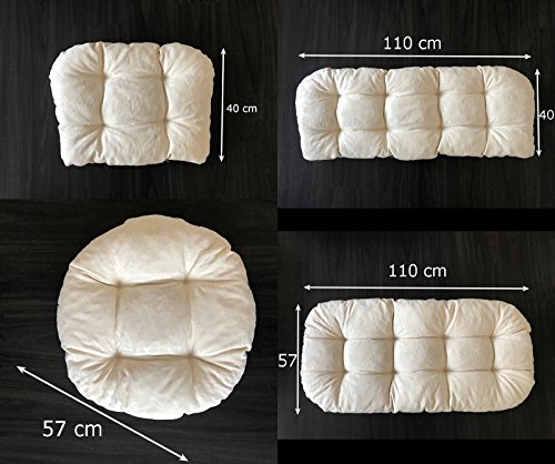 Lieferumfang: Sitzkissen: 1 x 106 x52 x12cm Sitzkissen: 2 x 52x 52x12cm Rückenkissen: 2 x 52 x40 x12cm Rückenkissen: 1 x 106x40x12cm