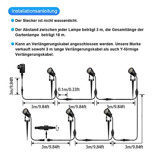 🌟⭐18M großer Bruchstück🌟⭐ Die verbesserte Gartenbeleuchtung mit Kabel werden geradlinig angeschlossen und die Gesamtlänge den 6 Gartenspot kann 12 m erreichen. Außen ObTeich, Garten, Rasen oder Verschütt gegangen – unsere Gartenstrahler beenden Ihre Anforderungen. (Wenn längeres Kabel wünschen, können Sie 2M Verlängerung ASIN B078NLGV7M erwerben.)
