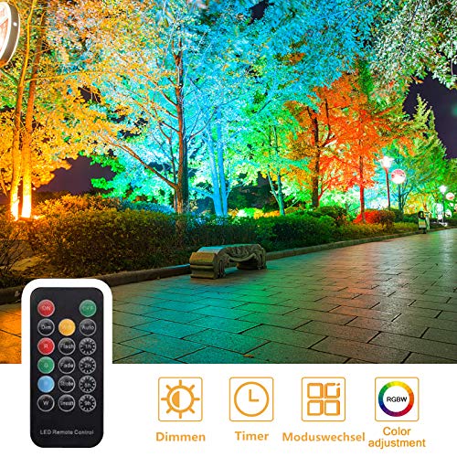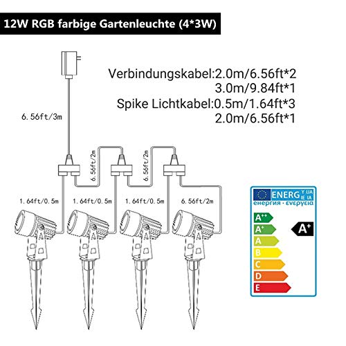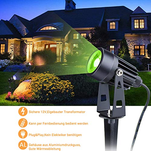 【RGBW LED Gartenleuchten】 Verbesserte LED COB Chips, Stellen Sie 3000K warmweißes, blaues, grünes und rotes Licht in vier Farben bereit.insgesamt 1400lm, Lange Lebensdauer bis zu 50000H. Das gleichmäßiges Licht bietet Sie eine mehrere Farben Atmosphäre für Ihren Rasen, Garten, Baum, Zaun und Straße.