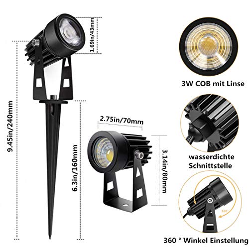 【IP65 wasserdichtes Design】Die LED Spotlights ist wasserdicht mit IP65, durch das wetterfeste Gehäuse bleibt die Gartenbeleuchtung vor Feuchtigkeit und Staub geschützt, belastbar und langlebig. Freilich der Stecker ist IP44. Der Stecker sollte an einem wasserdichten Ort platziert werden.