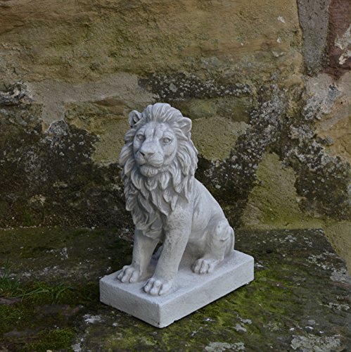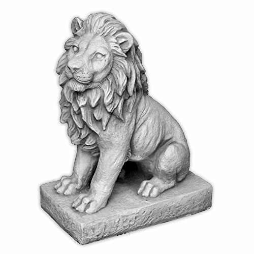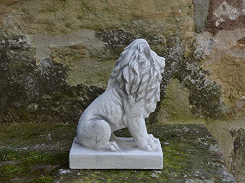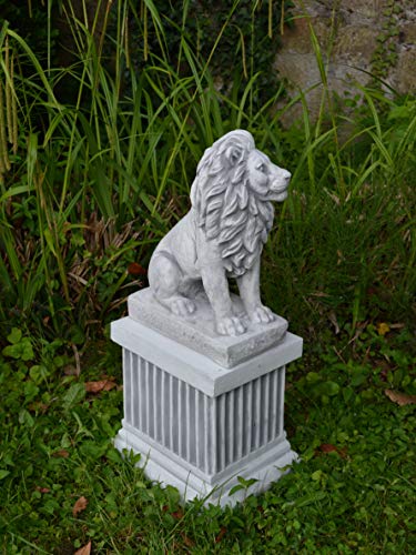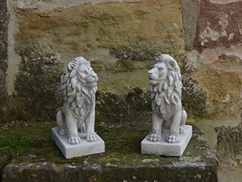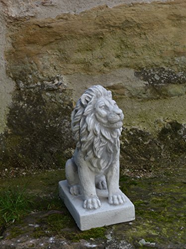 gartendekoparadies.de Kleiner Löwe Links, Steinfigur, H. 34 cm, 10 kg, Grau, frostsicher aus Steinguss für Außenbereich (Links)