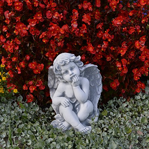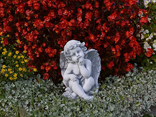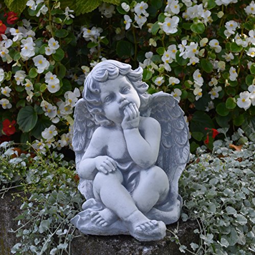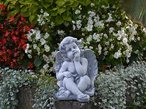 gartendekoparadies.de Sitzender Engel Grabengel, Steinfigur H. 25 cm, 8 kg, Grau, frostsicher aus Steinguss für Außenbereich
