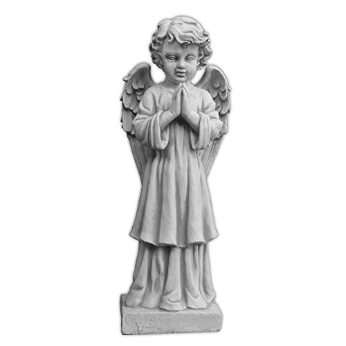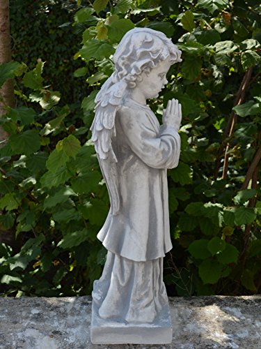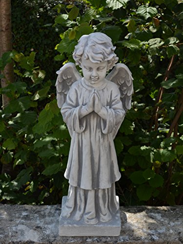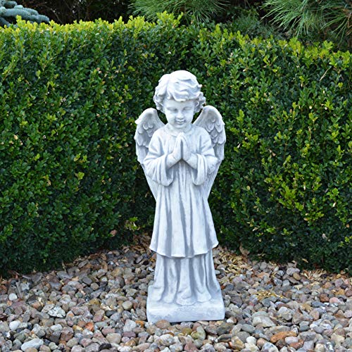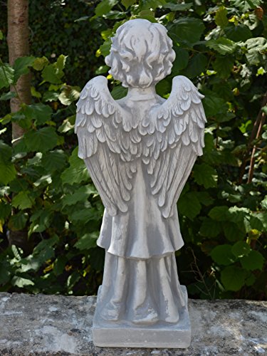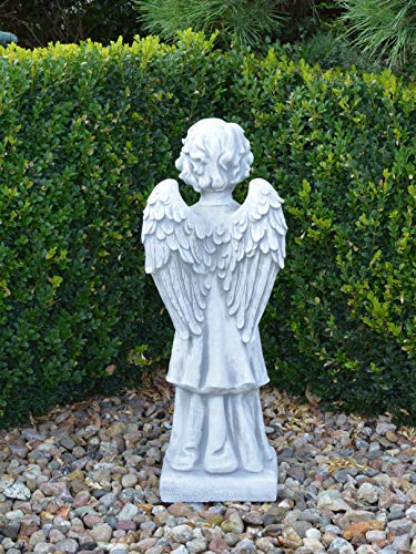 gartendekoparadies.de Massive Steinfigur großer Engel auf Podest aus Steinguss frostfest (Grau)