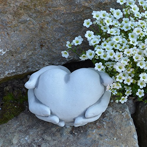 gartendekoparadies.de Massives Stein Deko-Element Herz in Hand, Höhe 10 cm, 18 x 18 cm, Grau, Gewicht 3 kg, aus…