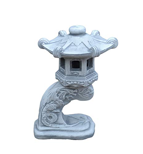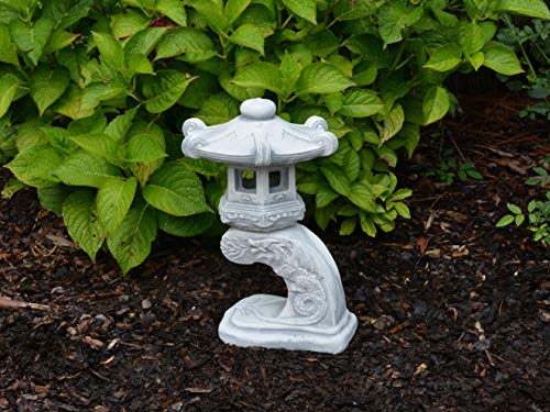 Größe: 32 cm, Maße Fuß: 15 x 19 cm, Ø Dach: 22 cm, Farbe: Veraltet, Gewicht: 5 kg, Werkstoff: Weißbeton / Steinguss.
