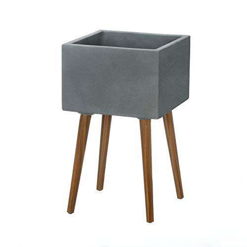 Das Pflanzgefäß ist die Gesamtheit Leichtbeton und hat anschraubbare Beine die Gesamtheit Akazienholz. Es ist an Stelle den Gebrauch innen und außen brauchbar.