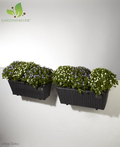 Die Balkonkästen mit handgeflochtenem Polyrattan umsorgen dekorative Akzente. Ein Blickfang für den Balkon und Garten von der Marke GARTENFREUDE! Größe: 47x17x15cm. Farblich nach Maß zur GARTENFREUDE-Möbelkollektion. Die wertvolle Kunststofffaser besticht durch hervorragende Eigenschaften: langlebig, pflegeleicht und witterungsbeständig.