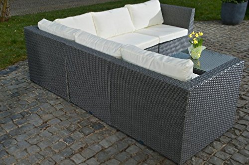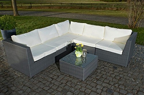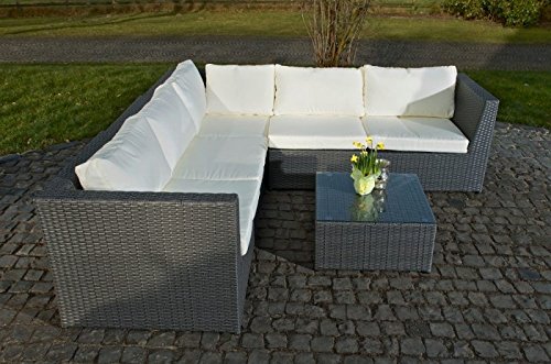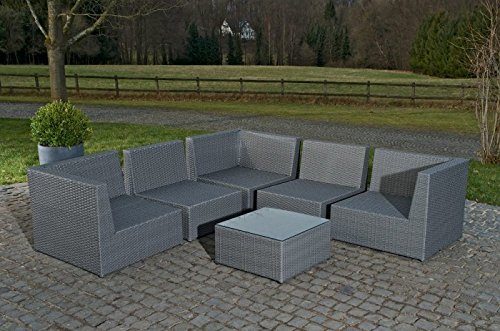 Viel Platz – bietet Ihnen diese Design Gartengarnitur der Extraklasse. Die Garnitur Bologna besteht aus drei Eck- und zwei Mittelelementen und kann individuell nach Ihren Wünschen zusammengestellt werden. Ob im Garten, auf der Terrasse oder im Wintergarten – diese wunderschöne Polyrattan Garnitur macht überall einen entsenden Eindruck. Selbstverständlich sind alle Auflagen im Lieferumfang enthalten. Die Schenkellängen betragen ca. 211 x 211 cm. Abmessungen ca.: Sitzfläche: 61 x 61 cm Sitztiefe: 61 cm Gesamthöhe: 62 cm Polsterhöhe: 8 cm Gesamttiefe: 74 cm Höhe Rückenlehne: 34,5 cm Rückenlehne oben: 8 cm Rückenlehne herab: 13 cm Warum Polyrattan? Polyrattan sieht aus wie herkömmliches Rattan, hat wohl deutlich mehr Vorteile. Es ist holistisch Wasserfest und ist extrem pflegeleicht. Im Gegensatz zu normalen Rattan, ist Polyrattan sehr widerstandsfähig und neigt nicht zum fasern. Es ist UV-beständig und kann problemlos stundenlang in der Sonne stehen ohne an Farbtiefe zu den Kürzeren ziehen. Das Gestell ist aus pulverbeschichtetem Aluminium. Die Mehrfachverstrebung sorgt für eine extreme Stabilität. Augenblicklich beim Gestell wird bei Noname-Produkten gespart. Das Möbelstück wird dann instabil und knarrt bei jeder Bewegung. Entdecken Sie bei HomeStylist die passenden Accessoires zu Ihrer neuen Gartenlounge: Bei uns finden Sie die wetterfeste Outdoor-Kissen, sowie die passende Kuscheldecke für laue Sommerabende! Machen Sie es sich mit den Produkten aus unserem Online-Shop gemütlich! Bekannt als bei HomeStylist erhältlich: Wir statten Sie nicht Gewiss für Draußen mit einzigartigen und hochwertigen Möbeln aus &ndash, sondern Bekannt als Drinnen. Finden Sie bei uns Ihr neues Doppelbett oder Bekannt als Einzelbett, den neuen Fellhocker für gemütliche Stunden vor dem Rauchfang oder den neuen Vorhang/ die neuen Gardinen. Bei Fragen zu unserem Online-Shop Sortiment stehen wir Ihnen gerne als Ansprechpartner zur Verfügung! Sprechen Sie uns an &ndash, wir helfen Ihnen gerne weiter!