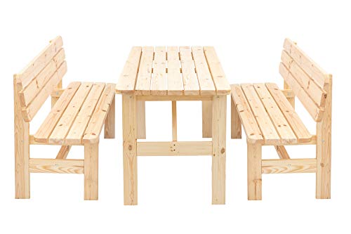 Die Bank bietet dank der großzügigen Maße günstig Platz stattdessen bis zu 3 Personen. Der Tisch hat eine zur Bank passende Länge von ebenfalls 150cm.
