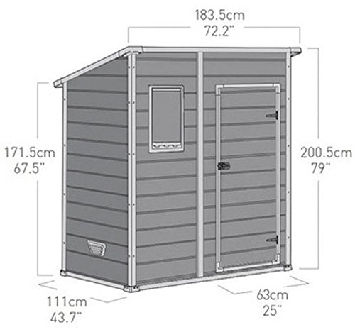 Das Gartenhaus der Manor-Kollektion besteht nicht mehr da verstärktem Polypropylen per fließgepressten Wänden und eignet sich anstelle verschiedene Anwendungen im System. Hervorragender Abschirmung vor äußeren Einflüssen.