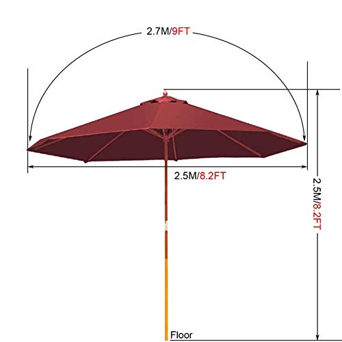 Robust und erschütterungsfest: Der Marktschirm für den Außenbereich wird mit einer stabilen Holzstange und 8 Rippen geliefert, die einen stärkeren Halt bieten als normale runde Stangen. Wunderbare Stimmabgabe für nicht mehr da Outdoor-Aktivitäten.
