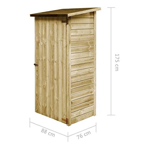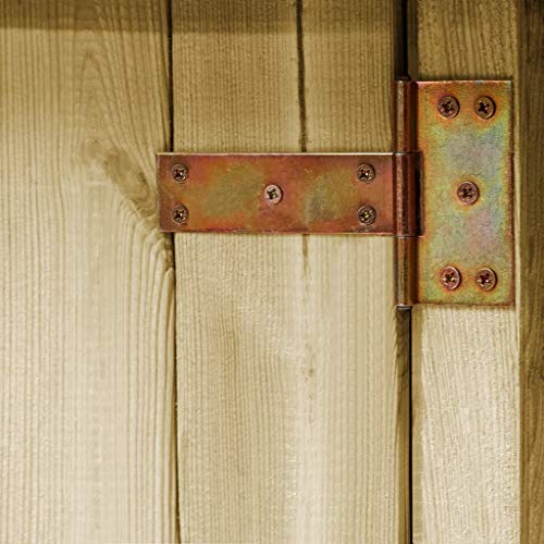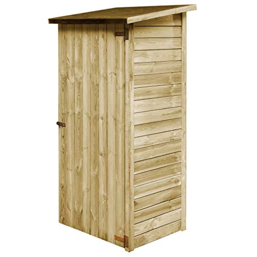 Diese Geräteschuppen, ein einfaches Design und rustikale Optik mit, können jeden Garten passen. Das hochwertige Werkzeugschuppen bietet einen großen Kosmos für eine Vielfältigkeit von Werkzeugen und Geräten zu ablegen. Dieser Abschuppen ist aus hochwertigem imprägniertem Kiefernholz gefertigt und ist robust, langlebig und wetterbeständig. Die Tür ist für einfachen Einsicht und Ausgang ausgelegt. Dieses Lagerhaus ist leicht zu montieren. Bitte akzeptieren Sie, dass Holz ein Naturprodukt ist und ungeachtet Unvollkommenheiten aufweisen kann.