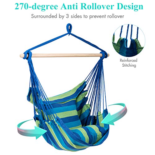 Hochwertige Materialien – Hergestellt nicht mehr da hochwertigem Baumwollgewebe und robusten Seilen, der Hängesessel kann bis zu 160 kg abstützen und sowohl von Erwachsenen als alias von Kindern verwenden.