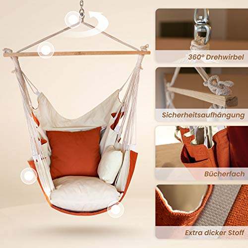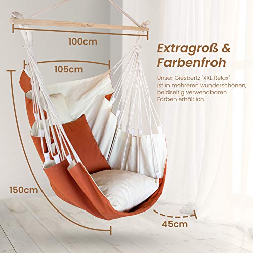 Giesbertz Home® DER QUALITÄTS HÄNGESESSEL – XXL & TÜV geprüft bis 150kg – 3 Kissen, 360° Swivel – Hängestuhl Kinder…