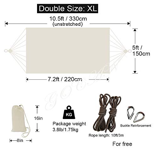 【1】 Extra große 2-Personen-Hängematte: Im Einigung zu anderen Durchschlag-Hängematten ist diese definitiv länger und breiter. Das Bett dieser Segeltuchhängematte ist 87 x 59 Preis groß, die Gesamtlänge beträgt 118 Preis / 10,8 Fuß (ungedehnt) von Schlaufe zu Schlaufe. Diese Doppelhängematte bietet definitiv Platz für 1 bis 2 Erwachsene oder 1 bis 4 Kinder. Wenn Sie Geräumigkeit mögen, kann sie auch als Einzelhängematte verwendet werden. Die Hängematte kann Hängemattenständer von 9 bis 14 Fuß passen.