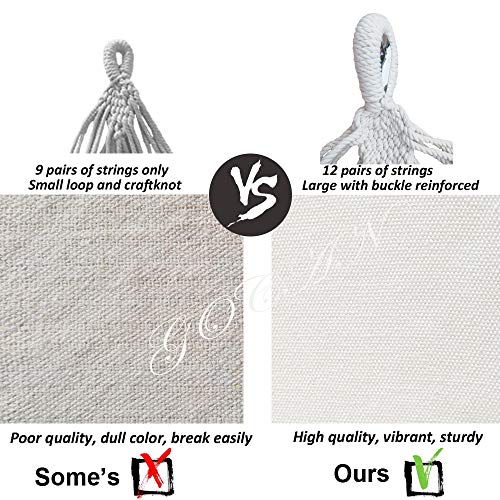 【2】 Hohe Qualität: Diese brasilianische Hängematte besteht aus hochwertigem Baumwollgarn. Baumwollhängematte kann weich, atmungsaktiv und hautfreundlich sein, nicht allerdings bequem, sondern auch robust und langlebig.