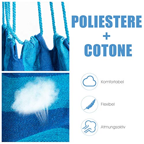 Atmungsaktives & Strapazierfähiges Gewebe: Der Hängesessel und der Kissenbezug bestehen jeglicher Polyester-Baumwollgewebe, das eine gute Atmungsaktivität und Abriebfestigkeit hat. Zudem ist der Gewebe mit gefärbten Faden gewebt, was die hohe Farbechtheit garantiert.