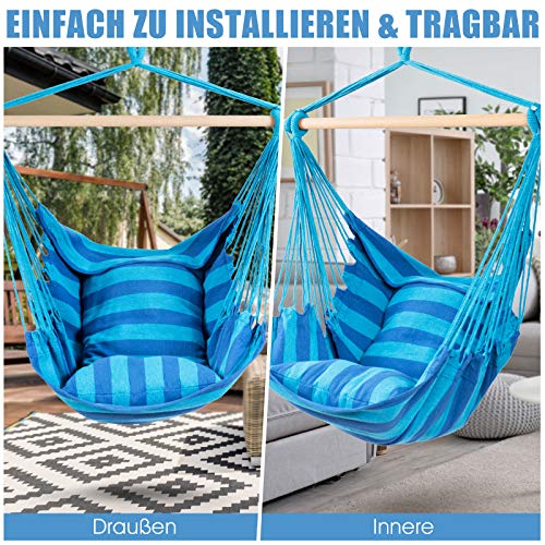 GOPLUS Hängesessel inkl. 2 Kissen, Hängestuhl zum Aufhängen, Hängesitz Hängeschaukel mit Holzstange, mit 160 kg…