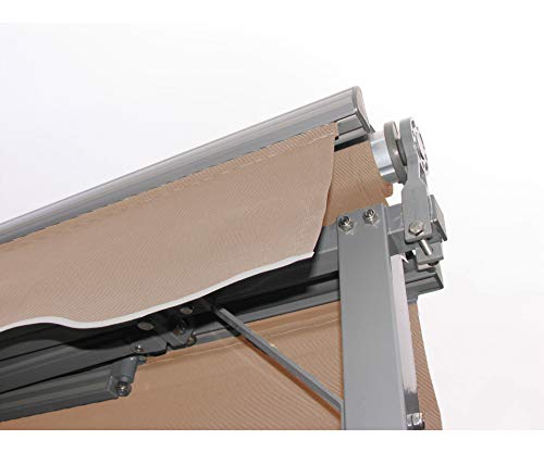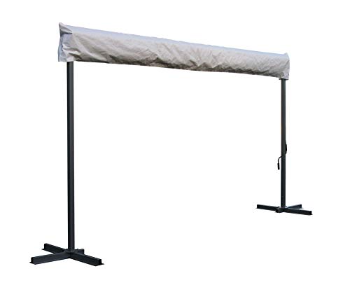 Mobile Standmarkise in Farbe sand mit stabilen Gelenkarmen.
