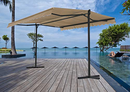Der komfortable sonnenschutz wie set en vogue können sie ohne reichlich mühe einen großen bereich von circa 3x4m beschatten. die standmarkise ist einfach per kurbel beidseitig über gelenkarme zu öffnen und zu derivieren. keine aufwendige wand-oder deckenmontage notwendig. der ideale schutz vor sonne und alias vor leichten regenschauern. vor starken winden und unwetter einfach kompakt derivieren. Inklusive schutzhülle 395x45cm mit reißverschluss allesamt 100% polyethylen art. 78012 – inklusive ständer – neigungswinkel stufenlos verstellbar – ein- und ausfahrbar per handkurbel – gelenkarme und aufrollbarren allesamt aluminium, standbeine 50x50mm mit fuß allesamt stahl lackiert – farbe gestell: grau (ral 7037) – bezug: 100% polyester – farbe bezug: sand – gesamtbreite circa 3,95 m (von standbein zu standbein) – höhe: 2,35m – ausfalllänge: 295 cm (je seite circa 150cm) beschweren sie die standfüße der markise jederzeit mit 40×40 waschbeton / gehwegplatten um einen sicheren stand zu gewährleisten. die platten müssen in das fußprofil eingelegt werden. die platten sind nicht im lieferumfang enthalten. die ware wird zerlegt zur selbstmontage geliefert. Speditionsware: bitte geben sie bei bestellung ihre rufnummer mit an, danach wir eine terminabsprache für die zustellung der ware treffen können.