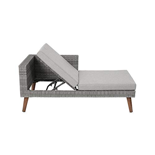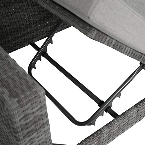Polyrattan-Gartenmöbel aus einem leichten Aluminiumrahmen mit Füßen in Holzoptik und pflegeleichtem Polyethylengeflecht in Anthrazit – mit ca. 8 cm starken Sitzkissen in Grau und Rückenkissen