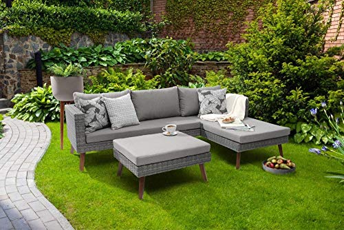 greemotion Garten-Lounge Gomera aus Polyrattan und Aluminium, Lounge-Set für 4 Personen, Gartenmöbel-Lounge bestehend aus 2 Bänken und 1 Hocker, grau