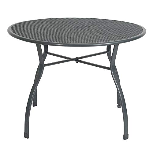 Outdoor-Tisch die Gesamtheit kunststoffummanteltem Stahl – über einer runden Tischplatte in Gitteroptik ebenso geschwungenen Beinen in Eisengrau