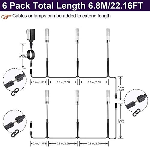 【Ausziehbare Gartenleuchten】: End to End Connectable. 6,8 m lang vom Stecker bis zur letzten Gartenleuchte und 0,8 m lang zwischen zwei Lampen. Noch wichtiger ist, dass die Wegeleuchten mit 18 zusätzlichen Verlängerungslampen ausgestattet werden können, die in der Regel zu 24 Lampen erweitert werden. Dadurch ist die Gesamtabdeckung 3-5 mal größer als bei anderen Wegeleuchten. Eine gute Abstimmung, um Ihre Auffahrt, Ihren Gehweg, Ihren Gartenweg, Ihr Deck, Ihren Garten oder jeden anderen Außenbereich zu d
