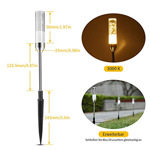 【Bubble LED-Wegeleuchten】: Stilvoll aussehende Acrylblasen-Gartenleuchten bestehen aus hochwertigem Aluminiummetall und klarem Kristallacrylmaterial. Unsere 6er 3W-Wegeleuchten mit 5050 LED-Perlen und einer Leistung von 360 Lumen (60 lm / 0,5 W pro Leuchte) sind 25-mal heller als Solarwegleuchten und beleuchten einen Bereich. 2700K warmweiße Außenleuchten verleihen der Gegend bei Nacht definitiv ein neues Aussehen und Ambiente.