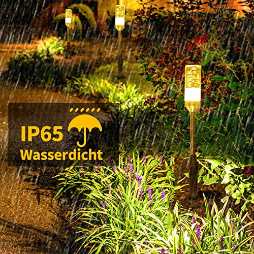 【Außenleuchten für Außenlandschaften】: Die wasserdichten und langlebigen Wegeleuchten IP65 können bei jedem Wetter üblicherweise funktionieren. Sorgen Sie sich absolut nie darum, das Licht Regen oder Schnee auszusetzen. Diese Gartenleuchten können das ganze Jahr über verwendet werden, um Ihrem Gartenbereich Glanz zu verleihen und Ihrem Außenbereich ein verzaubertes Aussehen zu verleihen. (Bitte schrauben Sie jeden Stecker fest und halten Sie den Zwischenstück trocken.)