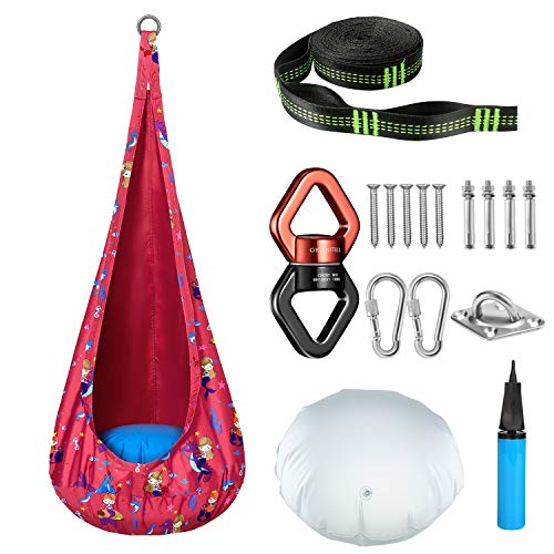 GREENSTELL Hängesessel für Kinder, Hängehöhle mit Zubehörteil und Drehlager, Hängesack mit PVC Sitzkissen Schaukelsitz…