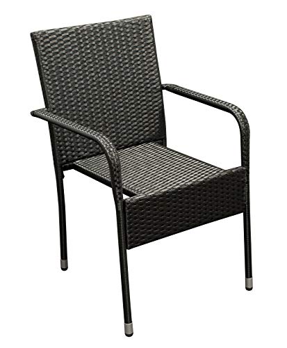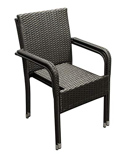 Die Sessel sind stapelbar, der Tisch besitzt mit Hilfe von eine mattierte Sicherheitsglasplatte.