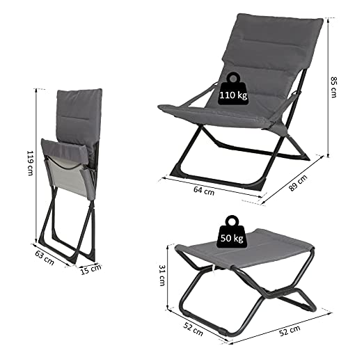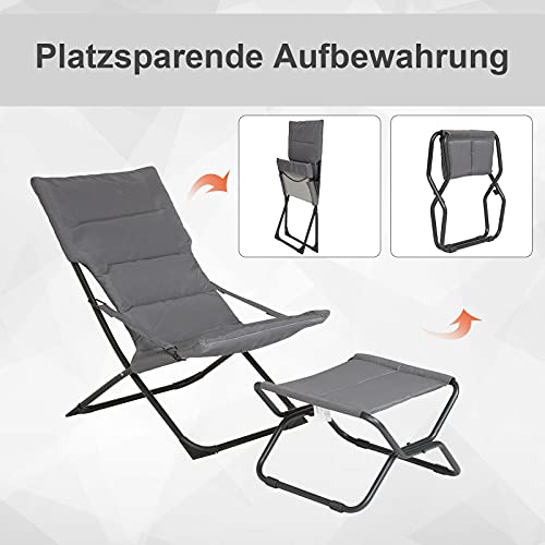 Faltbar: Die Liege ferner der Fußhocker können platzsparend zusammengefaltet werden. So können Sie das Set leer unkompliziert aufbewahren oder abstauben – zum Balkon oder zum Wesen