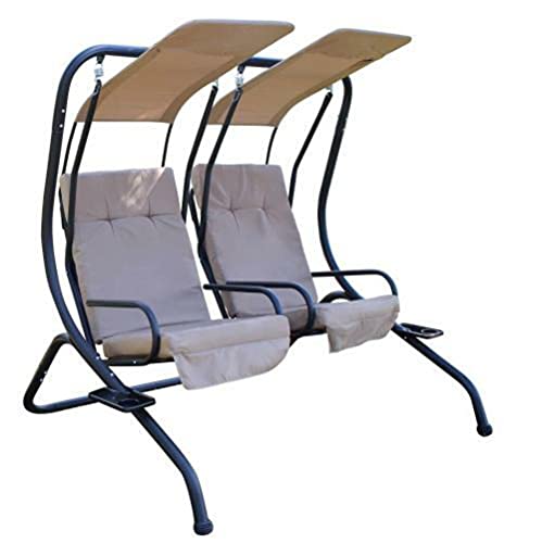 Hollywoodschaukel Cicladi besteht leer schwarzem Stahlgestell, Rohrdurchmesser 48 x 1,2 mm, auch Bespannung leer Polyester 180 g, taupe. Metrik: 170 x 136 x 170 cm.