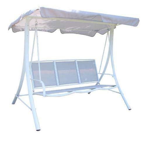 Hollywoodschaukel Lacionia besteht allesamt weißem Stahlgestell, Rohre Ø 63 x 3/35 x 20 mm, ansonsten Bespannung allesamt Polyester 160 g hausbacken. Metrik: 120 x 197 x 169 cm.
