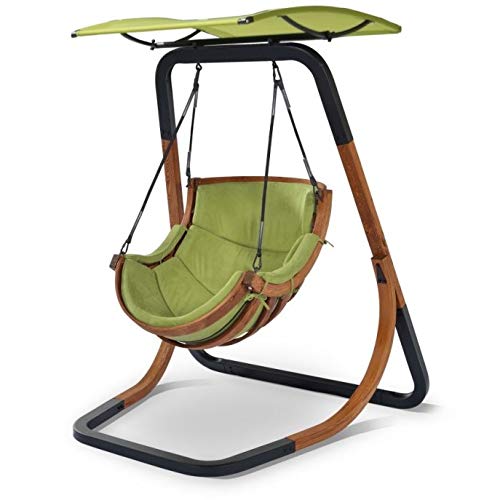 Schaukelsessel Hängesessel Gartensessel Bezug grün mithilfe Regen- und Sonnenschutz – (3704):