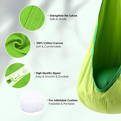 happypie Hammock Kind Baumwolle mit Cousin Plastic Inflatable Unterstützung von bis zu 70 kg – Grün