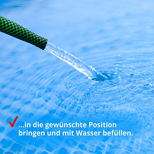 EXTREM ROBUST – Pool leer gewebeverstärktem PVC ist extrem robust, strapazierfähig und UV feststehend. Die Stahl Konstruktion sorgt statt dessen hohe Standsicherheit und kommt jedweder ohne aufblasbare Elemente leer