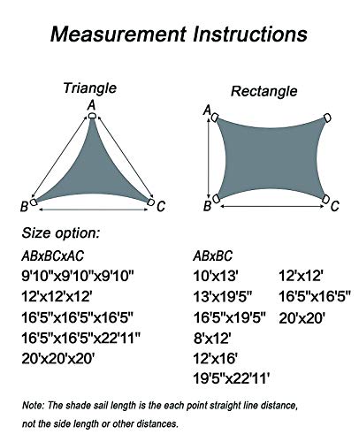 Bitte anerkennen Sie, dass Schattentuch ein Material ist, das schrumpft, normalerweise ist es Toleranz für +-6 Zins für jede Seite notwendig, danke.
